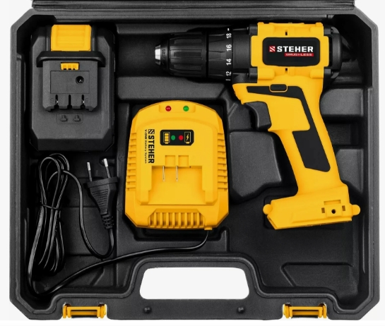 STEHER 12 В, 30 Н·м, 2 АКБ (2 А·ч), дрель-шуруповерт, кейс (CD-120-2)