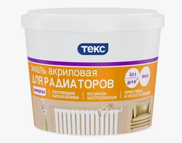 Глянцевая. ТЕКС Эмаль акриловая для радиаторов белая полуглянцевая (0,8л)