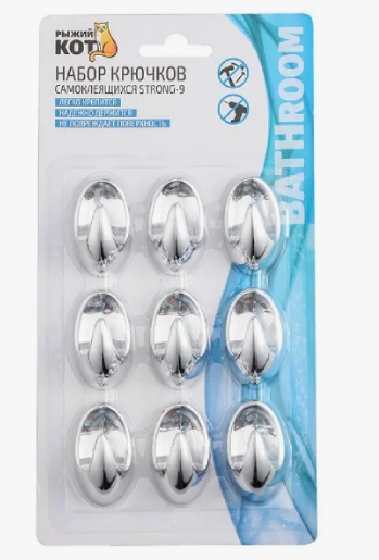 Крючки самоклеящиеся STRONG-9, набор 9шт/уп, цена за уп, хром.пластик 8230 Рыжий Кот