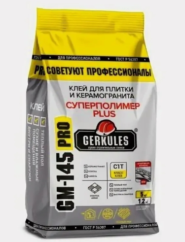 ГЕРКУЛЕС GM-145 Клей для плитки, керамогранита Суперполимер PLUS PRO (5кг)