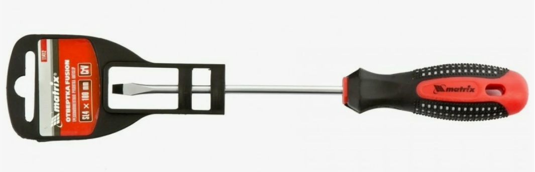 Отвертка Fusion, SL4,0 х 100 мм, CrV, 3-х компонентная рукоятка "anti slip"// Matrix