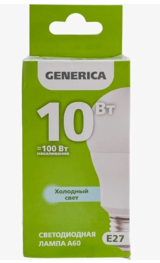 2 IEK GENERICA ЛОН A60 E27 10W(1000lm) 6500K 6K 55x100 матов. LL-A60-10-230-65-E27-G