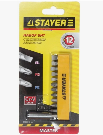 STAYER 12 шт, набор бит с адаптером (2609-H12_z01)