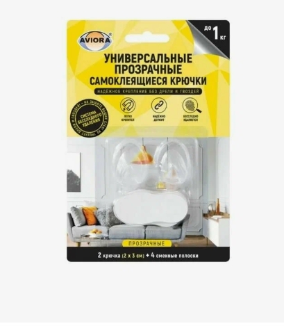 Крючки самокл. с сист бесслед.удал (2 шт) прозрачные МАЛЫЕ"AVIORA" /20 (302-206)