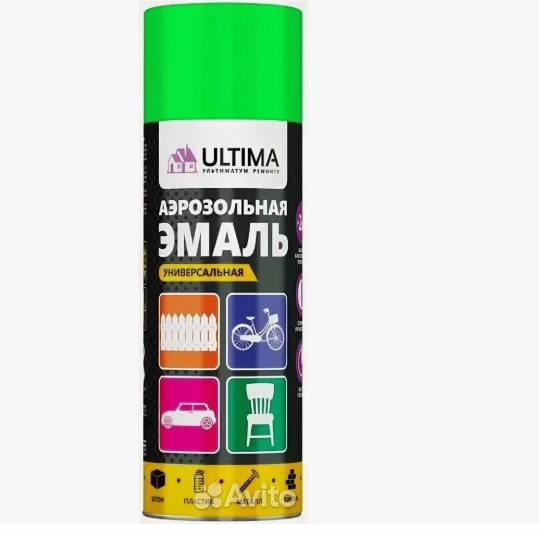 Зеленая. ULTIMA, эмаль аэрозольная флуоресцентная, ЗЕЛЕНАЯ, 520мл, (1 уп - 12 шт.)