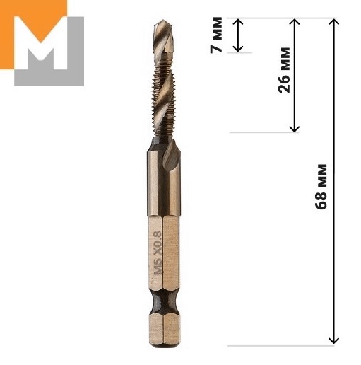Шаг 0.8. Сверло метчик М5x0.8 Р6М5К5