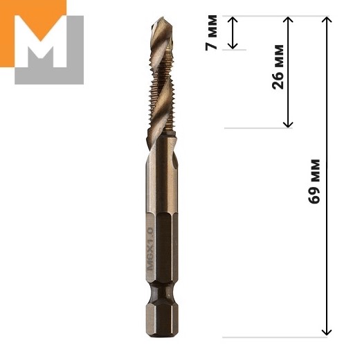Шаг 1.0. Сверло метчик М6 Р6М5К5