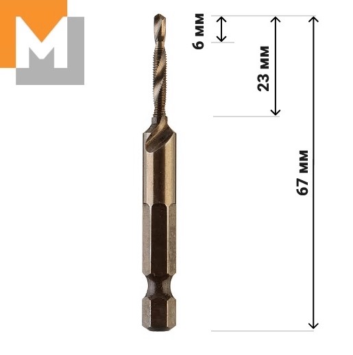 Шаг 0,5. Сверло метчик М3 Р6М5К5