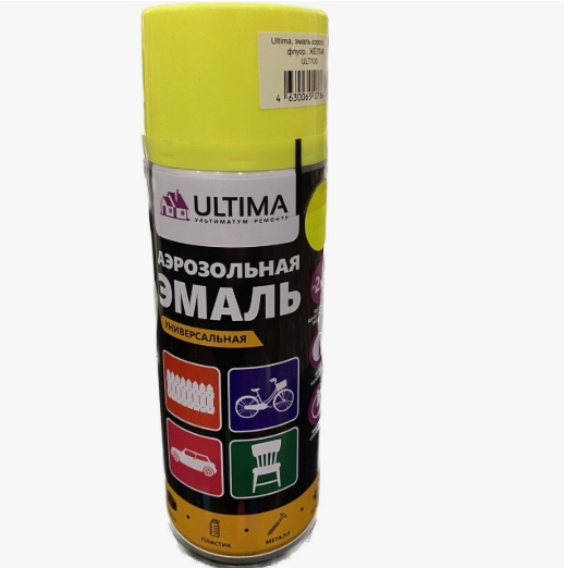 Желтая. ULTIMA, эмаль аэрозольная флуоресцентная, ЖЕЛТАЯ, 520мл